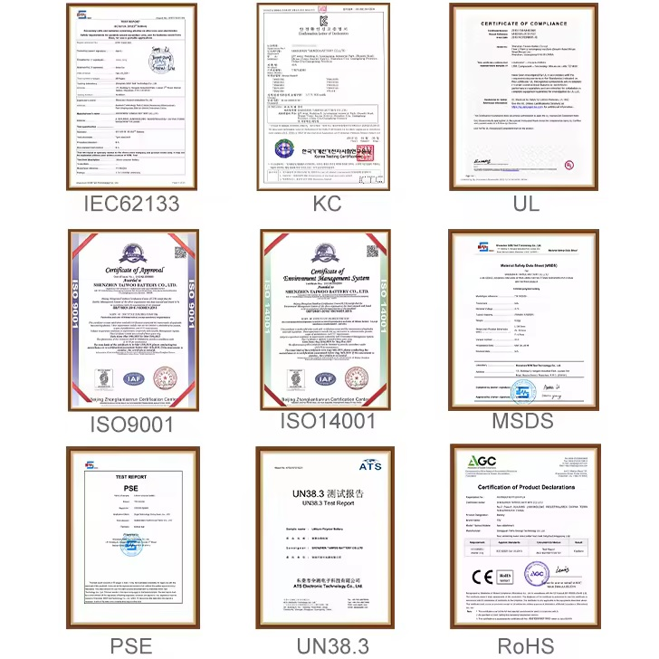 Certification : KC, UN38.3, MSDS, IEC62133, RoHS